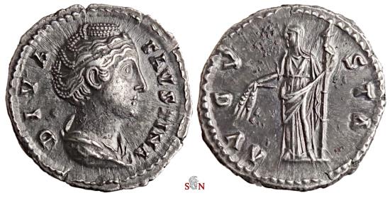 Diva Faustina I Denarius, struck AD 147 at Rome mint.