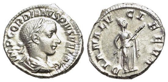 Gordian III (238-244). AR Denarius. Rome, AD 240. R/ DIANA LVCIFERA - EXTREMELY FINE