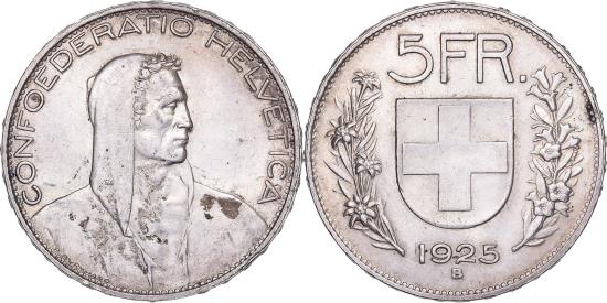| Switzerland, 5 Francs, 1925, Bern, Silver, , KM:38 |