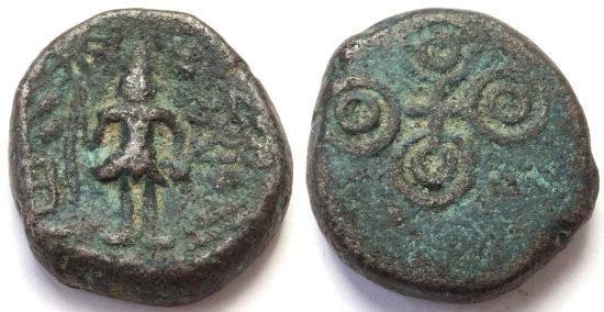 INDIA, UJJAIN: Copper coin with Shiva holding sun standard. Scarce.