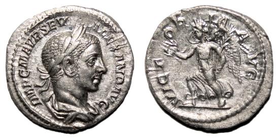 SEVERUS ALEXANDER AR Denarius. EF. The victory.