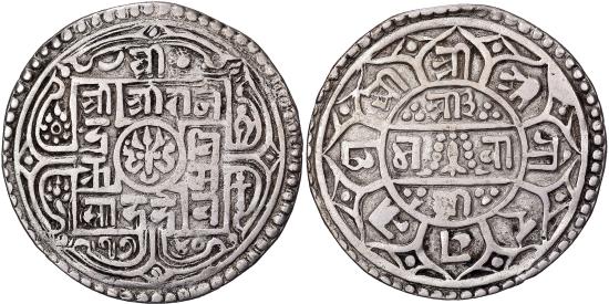 | Nepal, Rajendra Vikrama, 1 Mohar, 1740 (1818), Silver, , KM:565 |