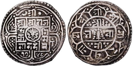 | | Nepal, Rajendra Vikrama, 1 Mohar, 1748 (1826), Silver, , KM:565 | | | Year 1748 of the Saka Era = year 1826 of the Gregorian calendar. | | FEATURES |