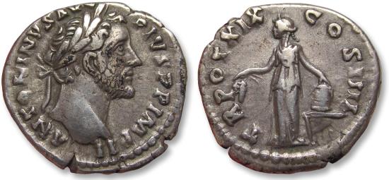 AR denarius Antoninus Pius, Rome mint circa 155-156 A.D. - TR POT XIX COS IIII, Annona -