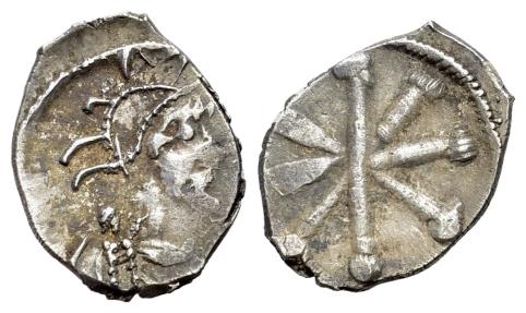 Constantine IV Pogonatus (668-685). AR Half Siliqua. Italian mint. Helmeted, draped and cuirassed bust of Constantinopolis. R/ Large TX monogram. VERY RARE