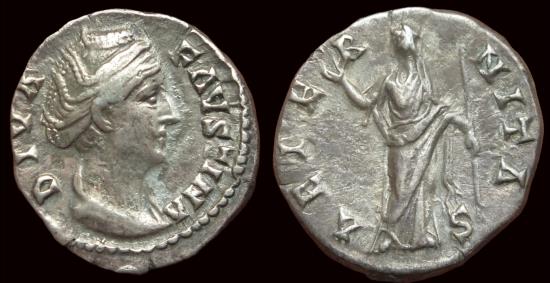DIVA FAUSTINA I, AR Denarius . Rome mint. Struck after 146 AD.