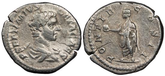 AR Denarius 3.54g. 20mm. 208 A.D. (under Septimius and Caracalla) Rome Mint