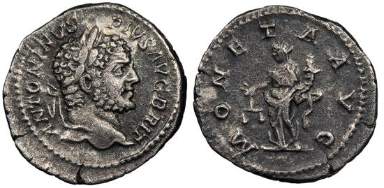 AR Denarius 2.57g. 20mm. 212-213 A.D. Rome Mint