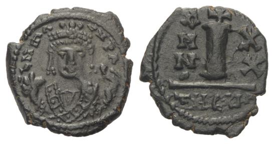 Av: Crowned bust facing, wearing consular robes, holding mappa and sceptre. Rv: Large I between ANNO and regnal year XX, cross above.