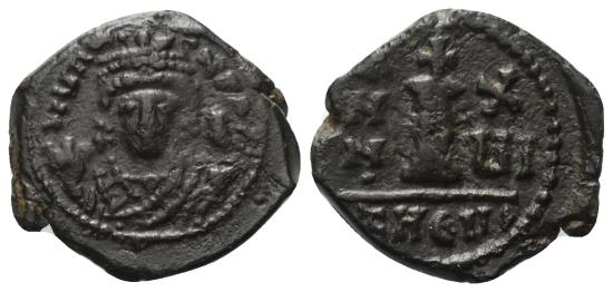 Av: Crowned bust in consular robes, holding mappa and scepter, facing. Rv: Large I between ANNO and year, cross above.