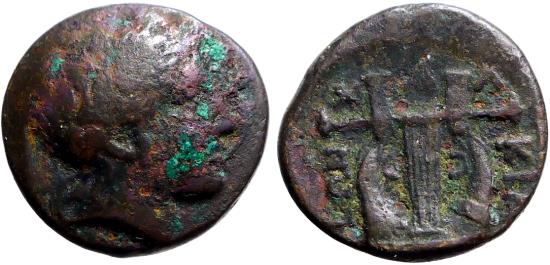 Obv: Laureate head of Apollo right.