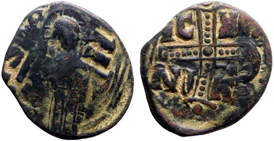 Obv: Three quarter standing figure of Christ Antiphonetes, right hand raised, book of gospels in left.