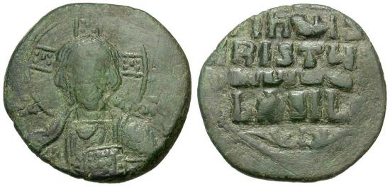 Title: *Sear 1813* Byzantine Empire. Anonymous. Class A2 Follis / Portrait of Christ