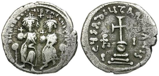 Title: *Sear 801* Byzantine Empire. Heraclius (AD 610-641) with Heraclius Constantine AR Hexagram
