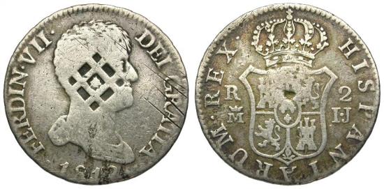 Title: Spain. Ferdinand VII (1808-1833) AR 2 Reales -Trinidad - Santiago - Principe / Lattice Countermark