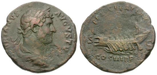 Title: Hadrian (AD 117-138) Æ As / Galley