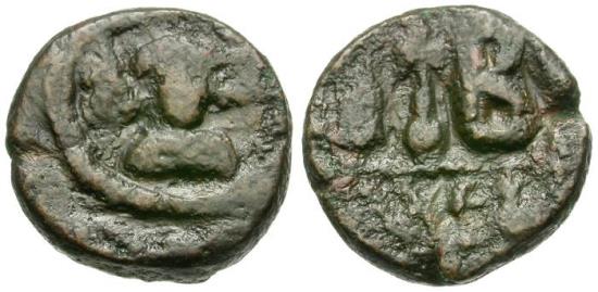 *Sear 855* Byzantine Empire. Sasanian Occupation of Alexandria. Time of Heraclius (AD 610-641). Khusro II (AD 590-628) Æ 12 Nummi