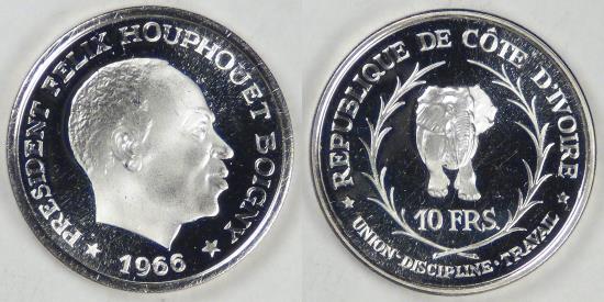 IVORY COAST - Republic, 1966, 10 Francs, CFA, Gem Proof DCAM