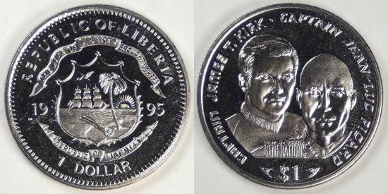 | LIBERIA - Republic, 1995 PM, Dollar (Star Trek: Generations), Gem BU Prooflike |