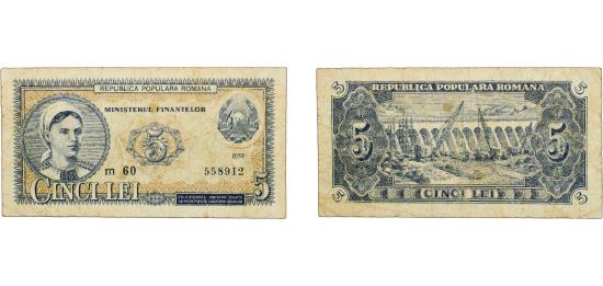 Romania People's Republic 1952 5 Lei (Ministry of Finance) Paper VF P 83
