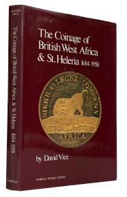 The Coinage of British West Africa & St. Helena 1684-1958 by David Vice, Format Publications, Birmingham, 1983, 237 pages, well illustrated, decorated maroon cloth, dust jacket. Near New. With a presentation inscription to David MacDonald signed by the author |
