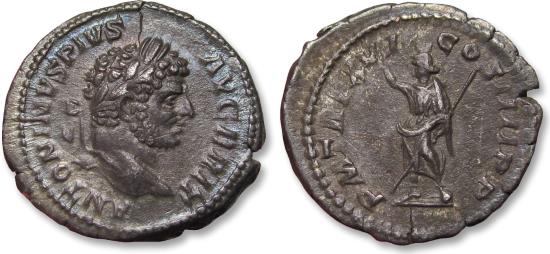 AR denarius Caracalla Rome mint circa 213 A.D. - P M TR P XVI COS IIII P P, Serapis -