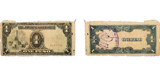 Philippines Japanese occupation 1943 1 Peso ¨With Purple Marked¨ Paper F Damage P 109