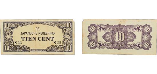 Indonesia Netherlands East Indies Japanese Occupation 1942 10 Cents (Japanese Occupation) Paper XF Damage P 121 Plomp PLNI25.3