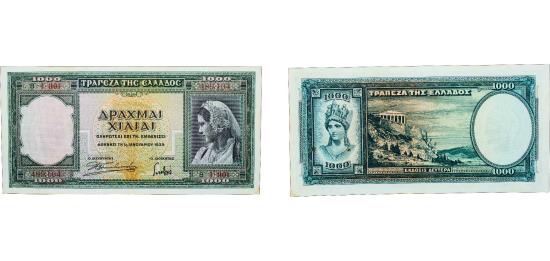 Greece Kingdom 1939 1000 Drachmai Paper AU P 110