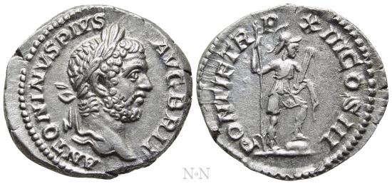 Obv: ANTONINVS PIVS AVG BRIT.Laureate head right.Rev: PONTIF TR P XIII COS III.Virtus standing right, foot on helmet, holding spear and parazonium.