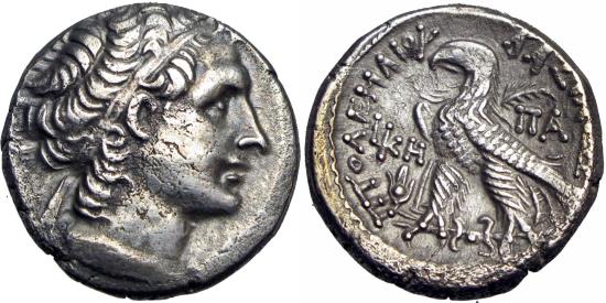PTOLEMAIC KINGS of EGYPT. Ptolemy XII Neos Dionysos (Auletes). 80-58 BC. AR Tetradrachm (26mm, 13.47 g, 12h). Alexandreia mint. Dated RY 28 (54/3 BC). Diademed head of Ptolemy I right, aegis around neck / Eagle standing left on thunderbolt; to left, LKH (date) above headdress of Isis; ΠA to right. Svoronos 1837; SNG Copenhagen 395; DCA 69. Toned, GVF.
