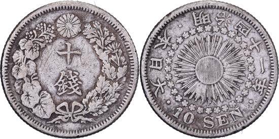 | | Japan, Mutsuhito, 10 Sen, Meiji Era, Yr. 41 (1908), Silver, | | | FEATURES |