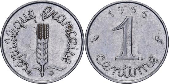 | | France, Centime, Épi, 1966, Paris, Stainless Steel, , KM:928 | | | Épi, Cursive legend surrounds grain sprig, Cursive denomination, date at top, 1991-1993 dated coins, non-Proof, exist in both coin and medal alignment. Values given here are for medal alignment examples. Pieces struck in coin alignment have been traded for as much as $50.00. | | FEATURES |