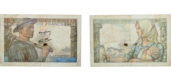 France Vichy French State 1942 10 Francs Paper VF P 99 Fay 08