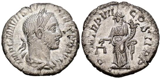 ALEXANDER SEVERUS. Denarius. (Ar. 2.87g/18mm). 228 AD Rome. (RIC 78). Obv: Laureate and draped bust of Alexander Severus facing right, surrounding legend: IMP CM AVR SEV ALEXAND AVG. Rev: Aequitas standing left carrying scales and cornucopia, surrounding legend: PM TR P VII COS II P P. Extremely Fine-/Extremely Fine.