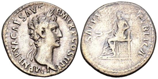NERVA. Denarius. (Ar. 2.80g/18mm). 97 AD Rome. (RIC 20). Obv: Laureate head of Nerva facing right, surrounding legend: IMP NERVA CAES AVG PM TR P COS III P P. Rev: Salus seated facing left carrying a branch, surrounding legend: SALVS PVBLICA. VF.