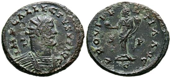 ALLECTUS. Antoninianus. (Ae. 4.30g/23mm). 293-296 AD Camulodunum. (RIC 108). Obv: Radiated and cuirassed bust of Alectus facing right, around legend: IMP C ALLECTVS PF AVG. Rev: Providentia standing left carrying a globe and cornucopia, between: SP, in exergue: C, around legend: PROVIDENTIA AVG. VF+.