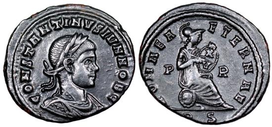 CONSTANTINVS IVN NOB C; laureate, draped and cuirassed bust right.