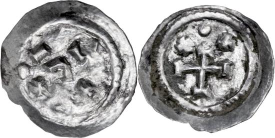 | The Lombards, Lombardic Italy. Anonymous (7th-8th century AD). Imitative AR 1/8 Siliqua (=1 carat) ( 11.5 mm, 0.18 g.). Abstract rendering of a crude bust, two crosses pattée below, within raised dotted border. R/ Cross potent above globe between two crosses pattée, within raised dotted border. RRR. Uique and unpublished in the standard references. For iconographic prototypes: cf. MIBE II, Tiberius II, Ravenna 22 and Maurice, Ravenna 64; Ranieri 447-9 and 483; Bernareggi, ‘problem di Numismatica: le cosidette “silique di Pertarito”’, AIIN 12-14, 1965 pp, 119-130, pls 22-23, 1-16; MEC I, 328-331. For denomination cf. M. O’Hara and I. Vecchi, ‘A find of Byzantine silver from the mint of Rome for the period AD 641-752, RSN 64, 1985, pp. 105-140, 1-20. Good VF The denomination of 1/8 of a siliqua, or I carat weight, was the smallest silver denomination employed in Byzantine Rome and Ravenna, cf. MIB III: Justinian I 79, Heraclius 152-157, Constans II MIB III, Contantine IV MIB 73-76, Justinian II first reign MIB III 43, Leontius I MIB 30-31 and seems to have ended with Tiberius III MIB 71-72, after which it was replacement by its copper equivalent of 30 Nummis and Rome, cf. Justinian II first reign MIB 75-77. |