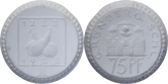 | | Weimar Republic, Stadt Grünberg, 75 Pfennig, 1922, , Porcelain | | | FEATURES |
