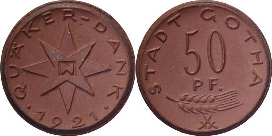 | | Weimar Republic, Stadt Gotha, 50 Pfennig, 1921, , Porcelain | | | FEATURES |