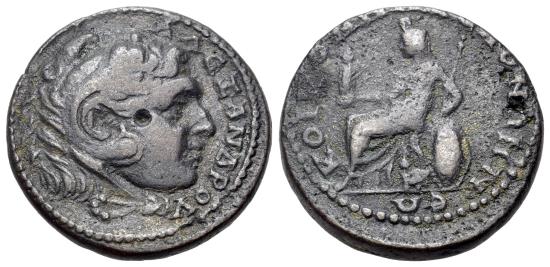 | Macedon, Koinon of Macedon. Pseudo-autonomous issue, time of Severus Alexander ? (222-235). Æ 26mm. Head of Alexander III, as Herakles. R/ Macedonia seated |