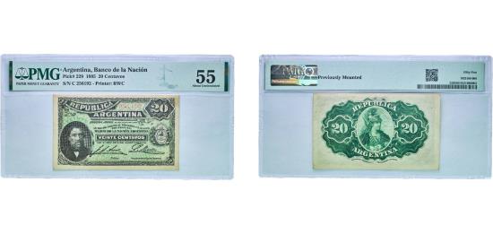 Argentina Federal Republic 1895 20 Centavos Paper PMG About Uncirculated 55 Pick 229