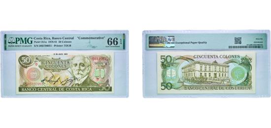 Costa Rica Second Republic 1981 50 Colones (Centenario Banco de Costa Rica) Paper (3000000) Gem Uncirculated EPQ 66 P 251