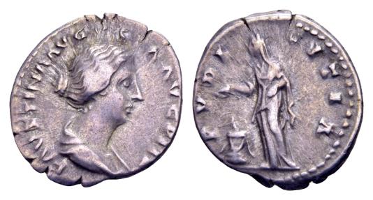 | Diva Faustina II, wife of Marcus Aurelius, died AD 175, AR Denarius (18 mm, 3.35 gram) Rome |