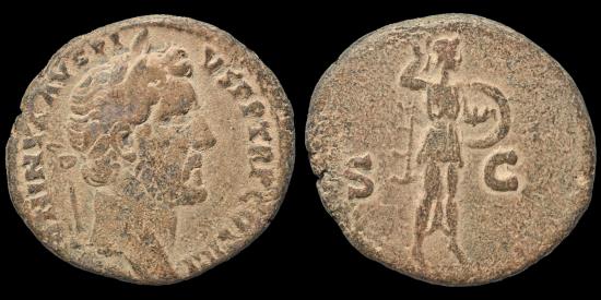 Antoninus Pius AE As Minerva standing to right