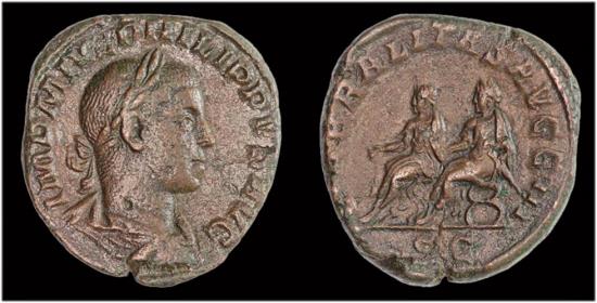 obv: IMP M IVL PHILIPPVS AVG, laureate, draped and cuirassed bust right, seen from behind