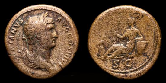 obv: HADRIANVS AVG COS III P P, laureate bust draped to right