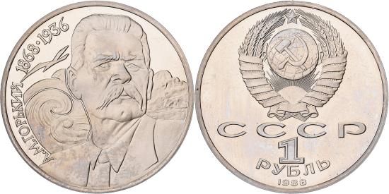 | | Russia, Rouble, 1988, Saint Petersburg, Copper-nickel, , KM:209 | | | National arms with CCCP and value below, Bust 1/4 right, designs and flying bird in background | | FEATURES |