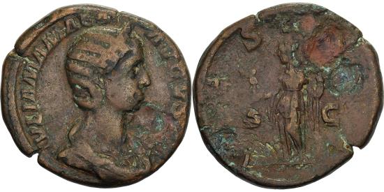 | | Julia Mamaea, Sestertius, 222-235, Rome, Bronze, , RIC:708 | | | Bust of Julia Mamaea, diademed, draped, right., Vesta, draped, standing left, holding palladium in right hand and transverse spear in left hand., RIC IV Severus Alexander 708., IVLIA MAMAEA AVGVSTA, VESTA S C | | FEATURES |